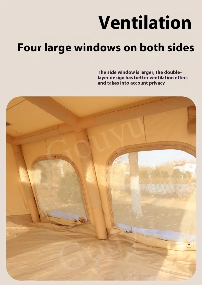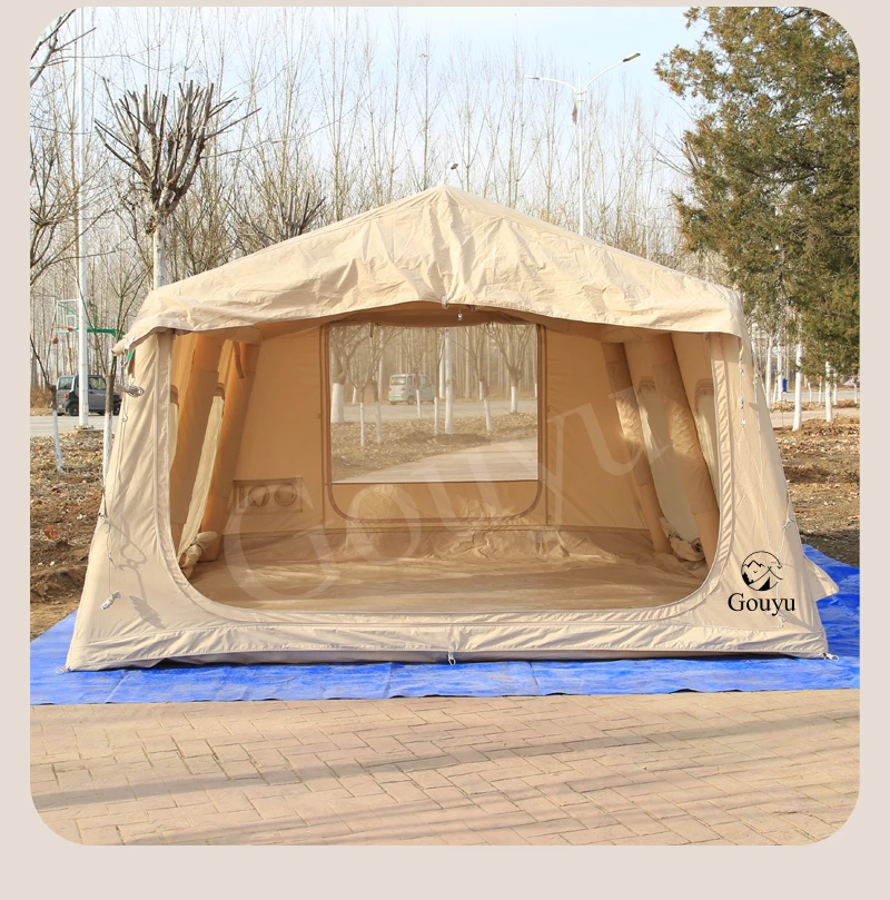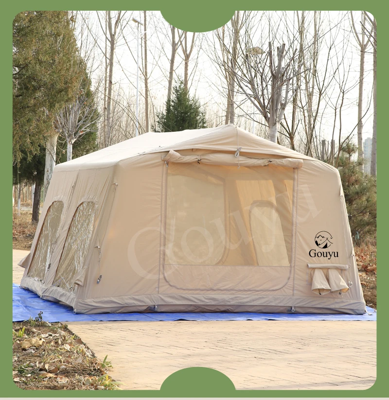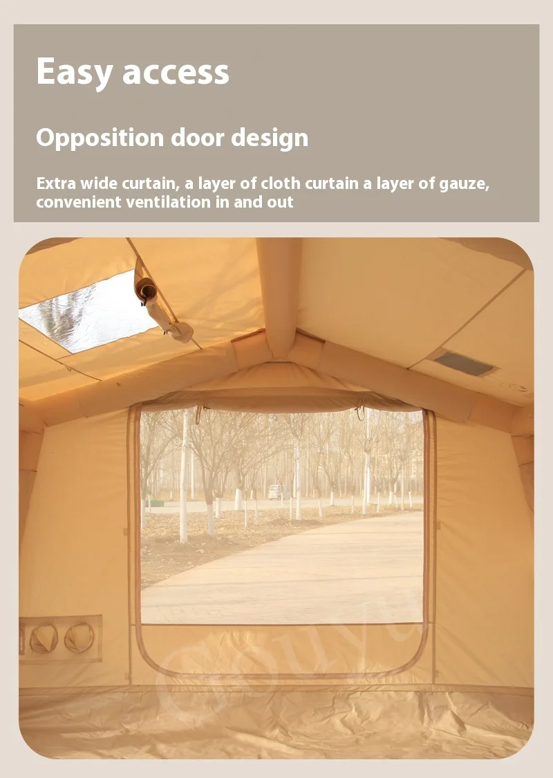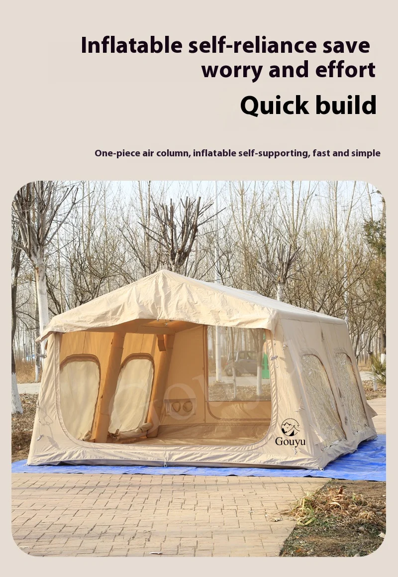 The 146 sq ft Flat Inflatable Tent offers rapid setup for outdoor camping, providing ample space and reliable rain protection. Its inflatable design ensures simple folding and packing, ideal for overnight trips and spontaneous adventures. Crafted for durability and ease, this tent shelters campers comfortably while withstanding unpredictable weather, making it a practical choice for experienced outdoor enthusiasts seeking convenience without sacrificing protection.