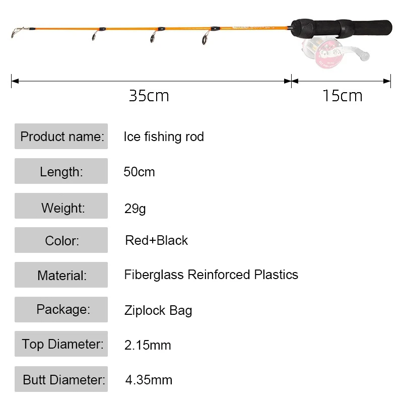 Beach Camp 19in. Winter Mini Small Ice Fishing Rod and Reel Set Fishing Rod