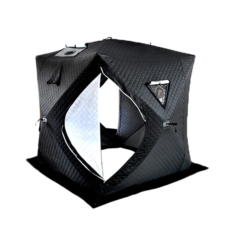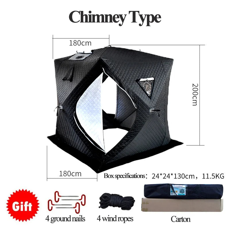 Beach Camp Pop-up Removable Tent with Roof Stove Jack, 3-4 Person Portable Cold-Proof Camping Ice Fishing Tent Black Without Bottom