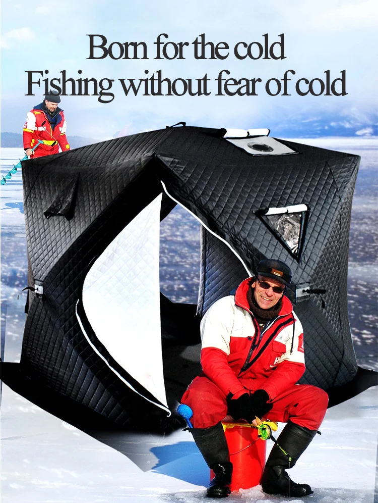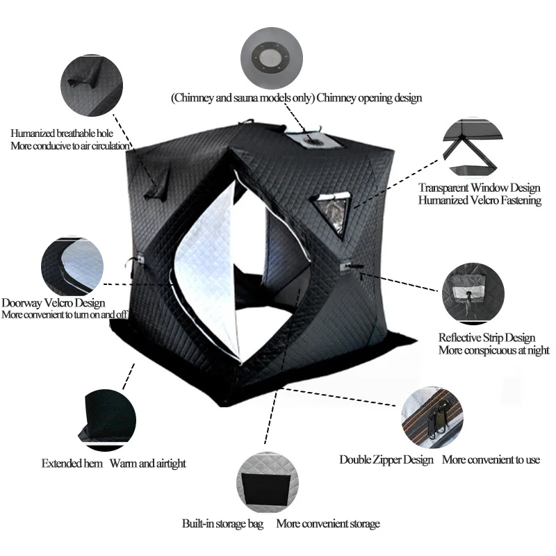 Beach Camp Pop-up Removable Tent with Roof Stove Jack, 3-4 Person Portable Cold-Proof Camping Ice Fishing Tent Black Without Bottom This specialized ice fishing tent combines rapid deployment with serious cold-weather performance. The pop-up design sets up in seconds, while the integrated roof stove jack safely accommodates heating equipment for extended winter sessions. Built to withstand harsh conditions, the cold-proof construction maintains structural integrity in freezing temperatures. The open-bottom design allows direct ice access and promotes ventilation, eliminating condensation buildup. Accommodates 3-4 anglers comfortably with ample headroom. The removable components enable customization for different fishing scenarios and simplified storage. Finished in tactical black for low visibility on frozen surfaces. An essential shelter for serious ice fishing enthusiasts seeking reliability and convenience.