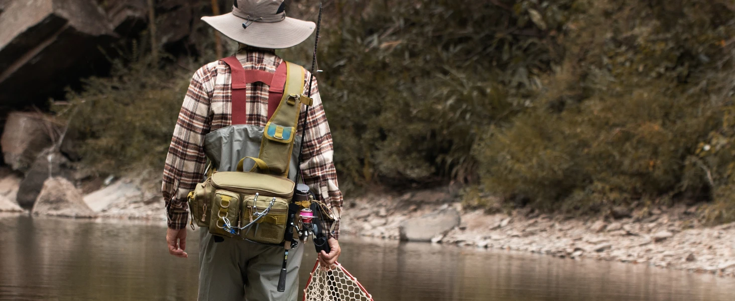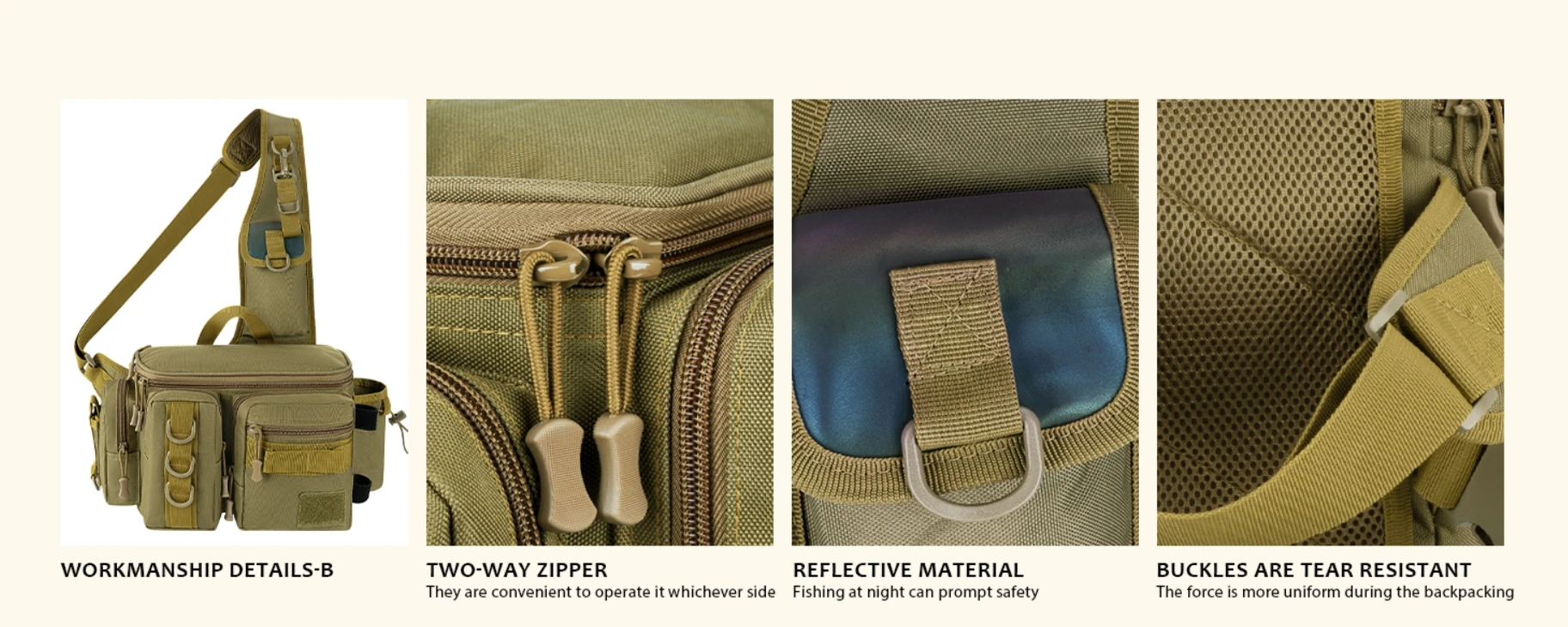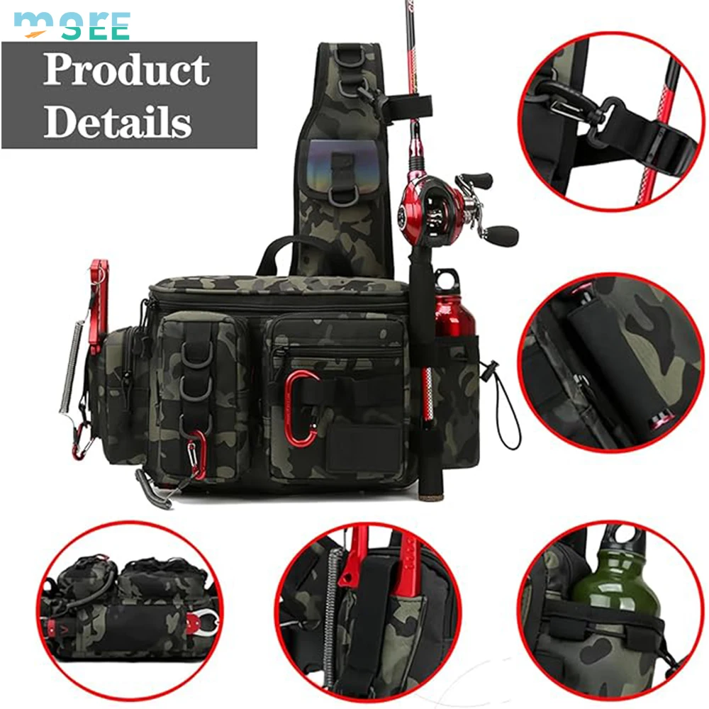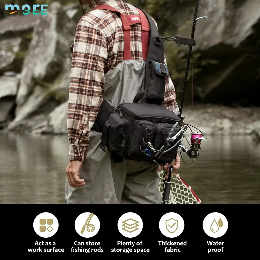 Beach Camp Selection D-Rings and Waist Strap Portable Fishing Tackle Bag Fly Fishing Bag Sling Pack Fishing Pack Waist Pack
