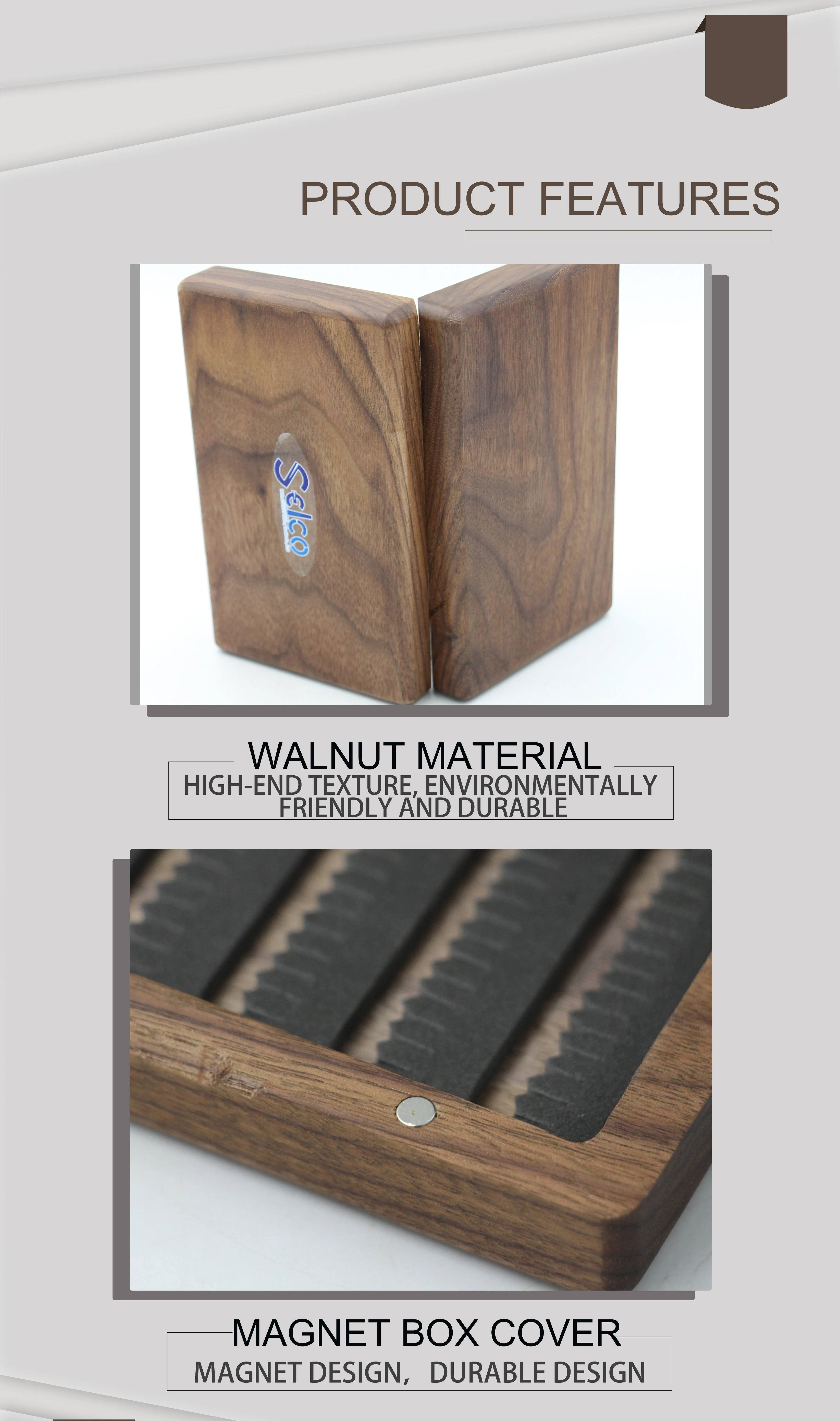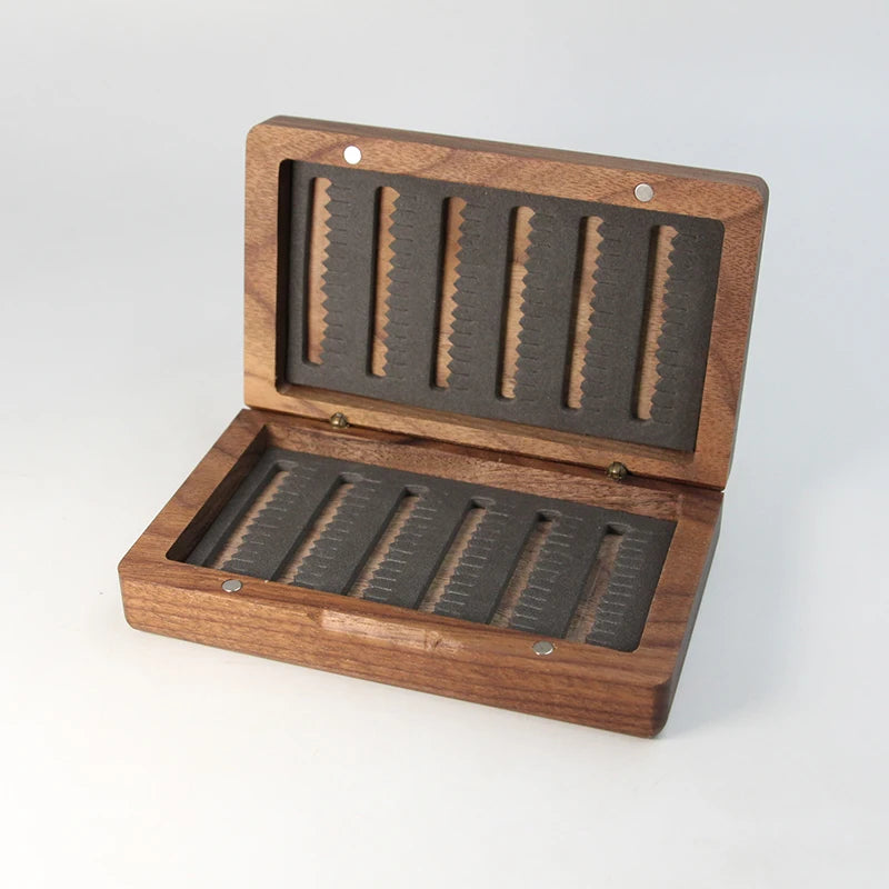 Engineered for serious fly anglers, this professional-grade tackle box combines durability with thoughtful organization. Crafted from rich black walnut, it offers natural resistance to moisture while delivering the refined aesthetics serious fishermen appreciate. Multiple compartments accommodate flies, leaders, tippet, and essential tools with secure retention. The compact design fits easily into a vest or pack, making it ideal for backcountry expeditions or streamside sessions. Whether you're targeting trout in alpine waters or exploring new fisheries, this box keeps your most critical gear protected and instantly accessible.